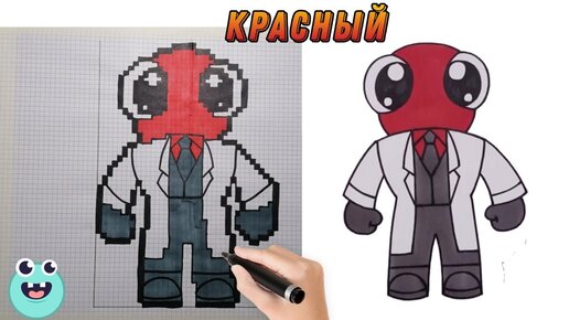 Как нарисовать КРАСНОГО РАДУЖНОГО ДРУГА по клеточкам из Роблокс (Красный радужный друг Рэд )