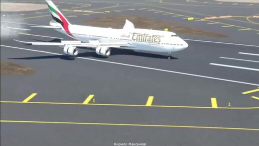 Мяконько коснулся земли. Уж точно лучше, чем в прошлый раз. Посадка на Боинг 747 Emirates MSFS 2020