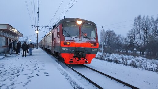 Электропоезд ЭД4М-0280 прибывает к о.п. Совхоз Бердский
