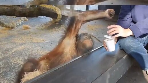 Вы будете кататься со смеху по полу, как и эта обезьяна! Мужчина показал ей фокус и она была настолько удивлена, что чуть не лопнула от смеха!