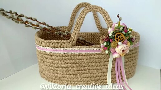 Вязальщицам на заметку!!! Вместо громоздкой плетеной - компактная вязаная Пасхальная корзина из джута. Идея создания корзины и декора к ней.