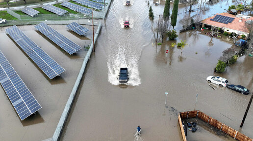 Заболоченные дороги и посевы в разоренной наводнением Калифорнии