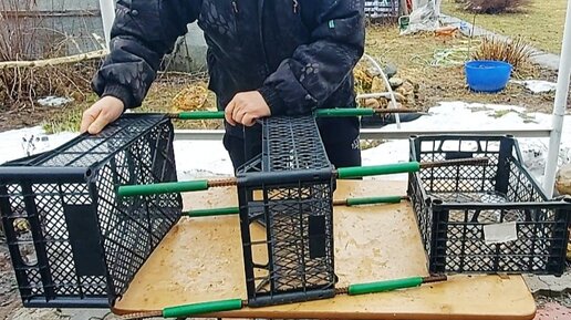 Из пластиковых ящиков простая полка для рассады и цветов своими руками