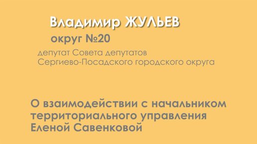 Владимир Жульев – о взаимодействии с начальником ТУ Еленой Савенковой