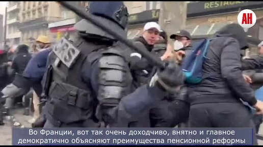 Во Франции тем, кто не понимает преимущество пенсионной реформы, вот так очень доходчиво, внятно и главное демократично это объясняют