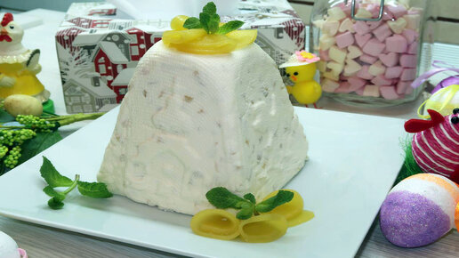 Творожная пасха с персиками. Нежная и в меру сладкая, с сочными кусочками персиков - приятное и вкусное угощение на пасхальный стол