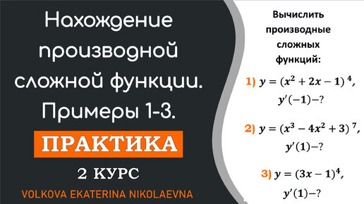 Нахождение производной сложной функции. Примеры 1-3.
