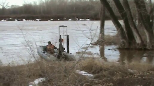 Река . Разлив. Аэролодка переворачивается при развороте .