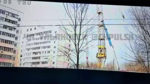 ⚡️ Момент падения крана на улице Хваткова в Ульяновске попал на камеру видеонаблюдения. Видео: ЧП Ульяновск