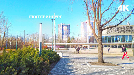 Екатеринбург. Дворец молодёжи и Площадь Коммунаров. Жители на трамваях и машинах торопятся домой. 4K