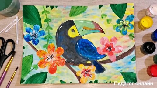 Как нарисовать тукана. Тропическая птица. Креативный рисунок для детей