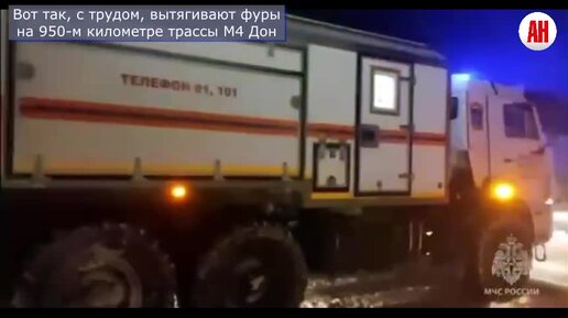 Вот так, с трудом, вытягивают фуры на 950-м километре трассы М4 Дон