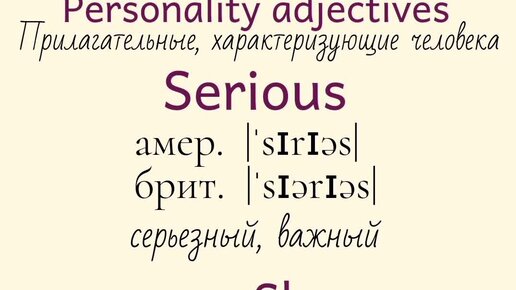 Personality adjectives/Прилагательные, характеризующие человека👉serious, shy, silly, smooth