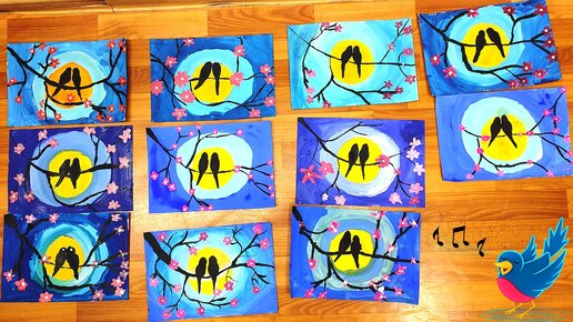 Как нарисовать весну и птиц на ветке. Урок рисования в школе