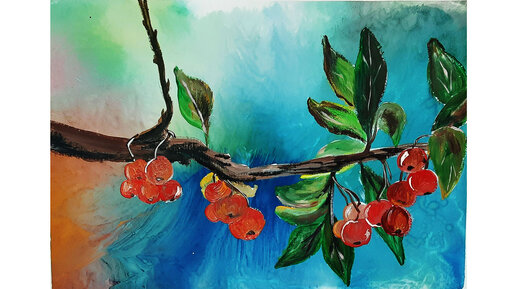 Как легко нарисовать яблоки на ветке. Нарисуем летний пейзаж. Как нарисовать яблоню. Необычное рисование.