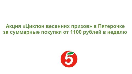 Новая акция «Циклон весенних призов» в Пятерочке за суммарные покупки от 1100 рублей в неделю - выигрывайте ценные призы и смартфоны