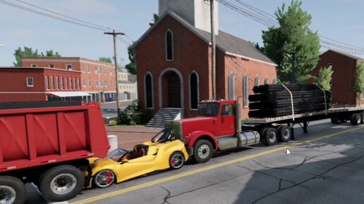 Столкновение двух грузовиков и легкового автомобиля Beamng drive, краш-тест. #драйв #1