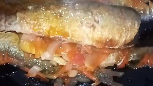 Вкусная жареная салака, тушёная с овощами в томатном соусе .