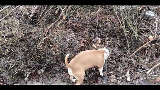 Гуляем с амстаффом в дождь со снегом и встречаем собак
