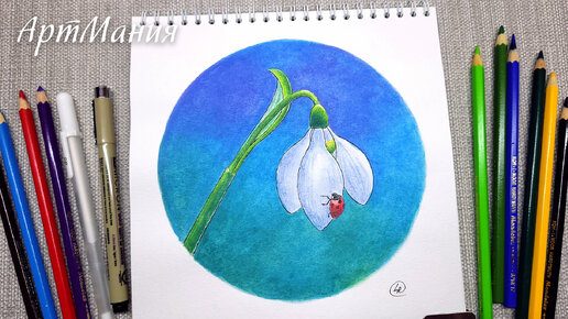 Как нарисовать подснежник - Рисунок акварельными карандашами