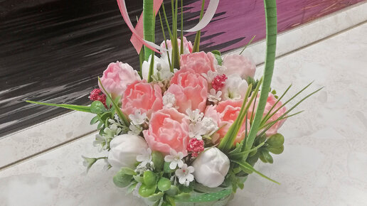 Корзина тюльпанов из мыла ручной работы (со звуком)