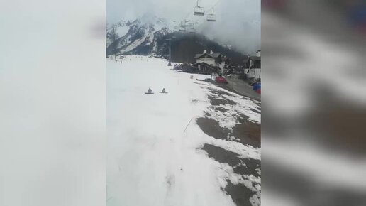 В горах Сочи все ещё лежит снег. А Роза Хутор и в конце марта популярен для горнолыжников...