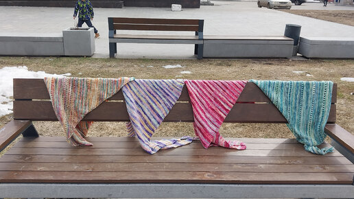 Не вязание! Мои будни!Прогулка в парке!Четверая косынка спицами из носочной пряжи Ализе супер вош Артисан связана!Коллекция растет!31.03.23г