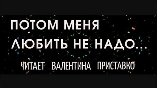 Потом меня любить не надо... Стихи Ирины Самариной. Читает Валентина Приставко.