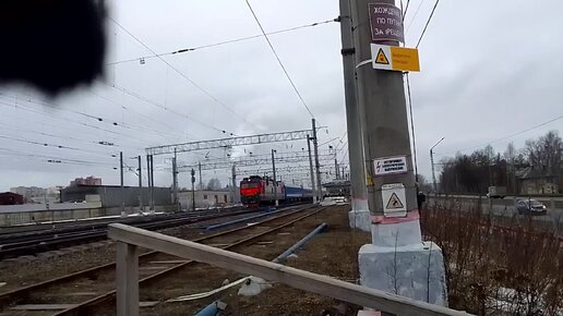ЭП1-189. Прибывает с поездом Арктика с севера. Интересные вагоны. Товарная станц
