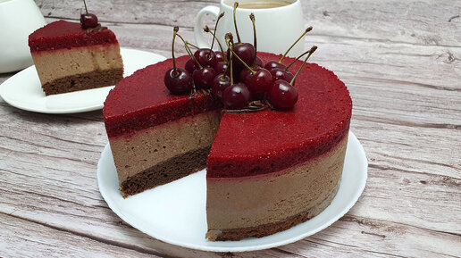 Низкокалорийный торт с шоколадным муссом и вишней, 122 ккал
