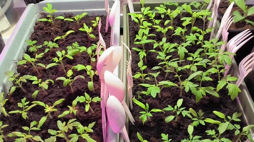 Обзор рассады томатов после пикировки через две недели. Полив рассады.