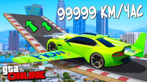 КАК ДАЛЕКО МАШИНА УЛЕТИТ С ОГРОМНОГО ТРАМПЛИНА НА СКОРОСТИ 3000 КМ/Ч? ПРЫЖКИ В GTA ONLINE!