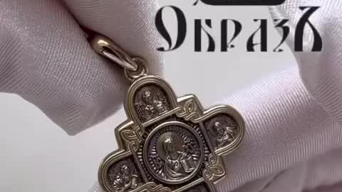 Крест «Господь Вседержитель. Казанская икона Божией Матери и восемь святых», золото 585 проба белое (арт. 201.065-3)