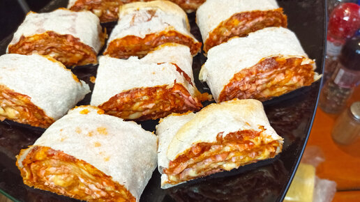 Беру тонкий лаваш и делаю пиццу. Удиви гостей. Пицца - рулет.