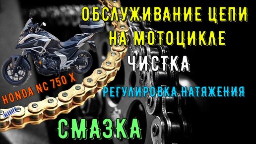 ОБСЛУЖИВАНИЕ ЦЕПИ, ЧИСКА, РЕГУЛИРОВКА НАТЯЖЕНИЯ И СМАЗКА ЦЕПИ НА МОТОЦИКЛЕ HONDA NC750X