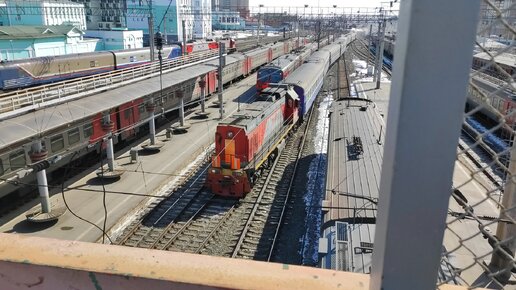 Тепловоз ТЭМ18ДМ-406 тащит состав пассажирского поезда №301Н на станции Новосибирск-Главный
