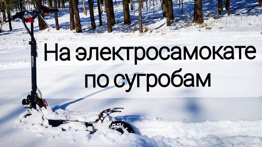 Покатушки зимой на электросамокате по снегу.