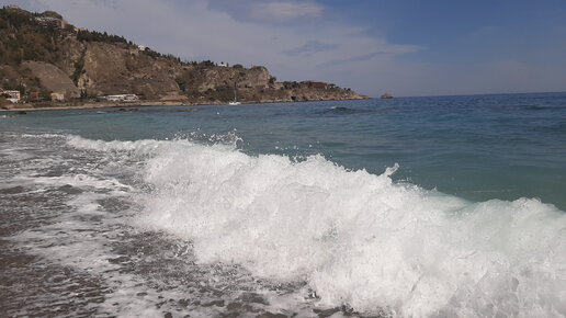 Сицилия. Две минуты у моря. Штормит сегодня в Таормина - Джардини Наксос 1 апреля. Звуки природы