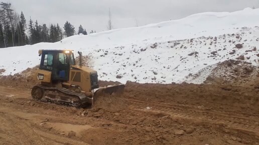 Бульдозер CAT работает в карьере.