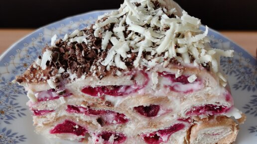 Торт из слоеного теста с вишней. Быстро и просто. Минимум продуктов и минимум Вашего времени.