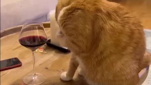 Неправильно вы, люди, вино пьете... Рыжий котейка научит, как надо