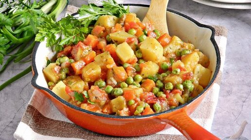Одно из самых популярных блюд. Овощное рагу с зелёным горошком.