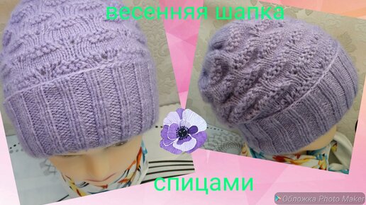 Весенняя женская шапка спицами, без шва.