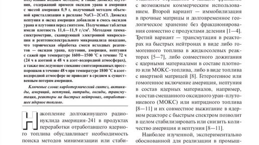 ИЗГОТОВЛЕНИЕ И ИССЛЕДОВАНИЕ ТАБЛЕТОК СМЕШАННЫХ НИТРИДОВ УРАНА, ПЛУТОНИЯ, АМЕРИЦИЯ И НЕПТУНИЯ