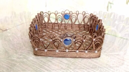 Сделала ВАЗОЧКУ -САЛФЕТНИЦУ из джута.