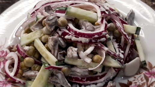 Салатик с куриными сердечками. Простой рецепт из доступных продуктов