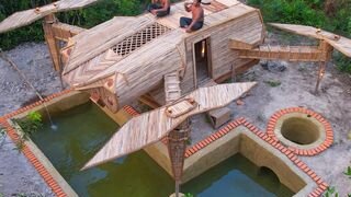 Как построить бассейн у дома из бамбука в джунглях! Выживание диких людей!
