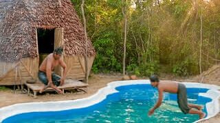 3-в-1 бамбуковая хижина с ванной и бассейном впереди - выживание в джунглях