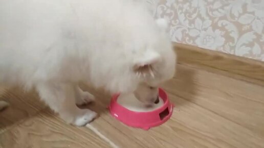Голодный щенок. Щенок пьет молоко. Васюся. Юси