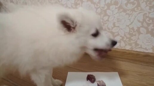 Шпиц кушает вкусняшку